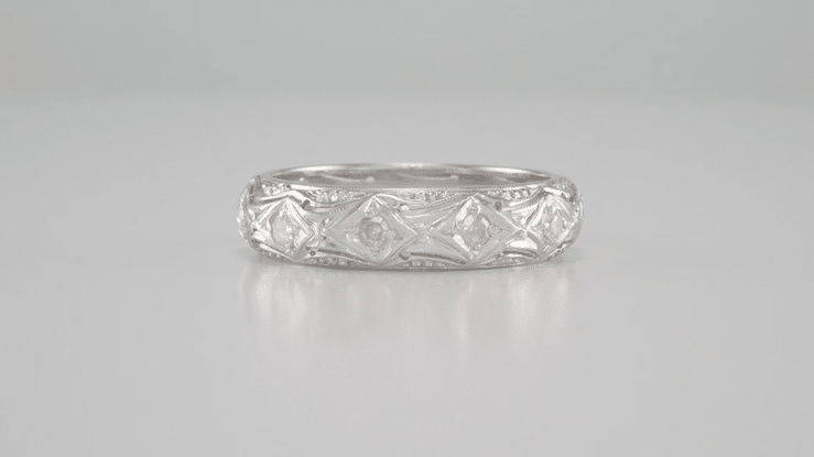 Art Deco Nichols Filigree Engraved Antique Diamond Wedding Band in Platinum - Size 6.5 | 4.9mm Wide