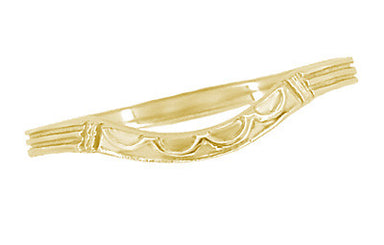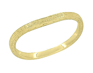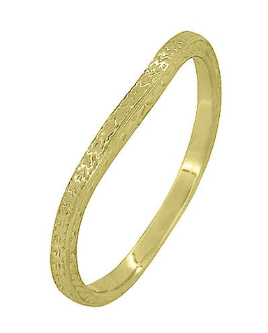 This Art Deco contoured antique design sculptural wedding ring in your choice of solid 10K, 14K or 18K yellow gold showcases a lovely vintage engra...