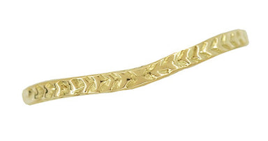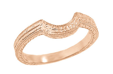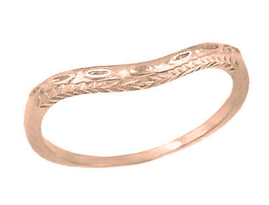 Artisan crafted in 14K rose gold, this vintage engraved wheat curved wedding ring design features a classic Art Deco carved wheat pattern on all th...