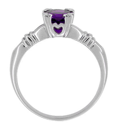 This delicate Art Deco filigree amethyst ring in 14K white gold features a vibrant natural purple amethyst ( February Birthstone ) of 0.25 carat, s...