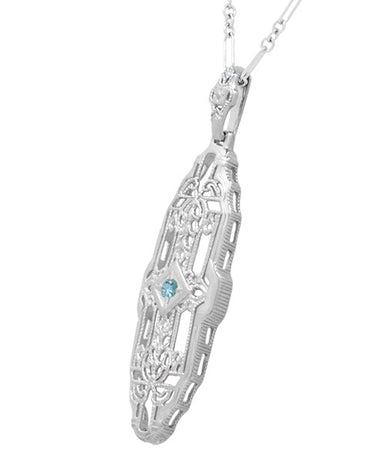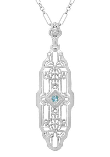 This stunning Art Deco filigree blue topaz necklace is hand crafted in sterling silver with lavish detail - even the refined links of this necklace...