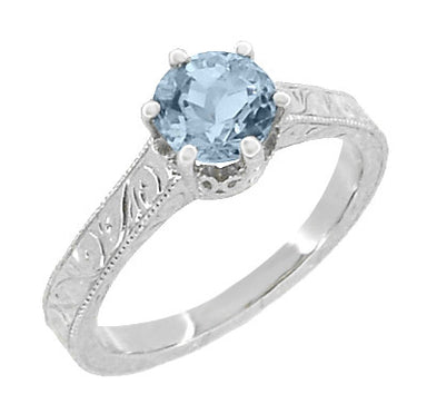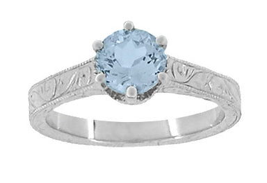 This classic Art Deco crown solitaire sky blue topaz promise ring in sterling silver features a secure six prong royal filigree crown set with a st...