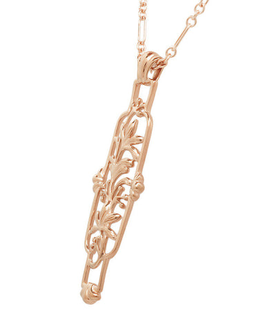 N164RDArtisan crafted in warm rose gold vermeil over sterling silver, this attractive antique reissue filigree Art Nouveau diamond cartouche pendant is s...