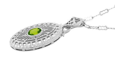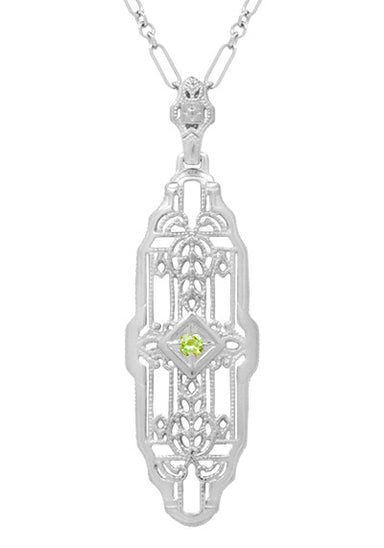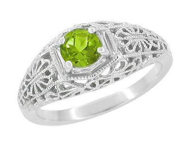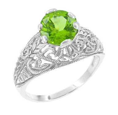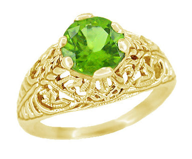 Our August birthstone jewelry, in vintage peridot jewelry styles in gold, silver, and platinum, dazzles with the spectacular brilliance and vibrant apple yellowish-green color of peridot, the birthstone for August. Fine natural peridot has been prized since Egyptian antiquity as a sun symbol and for its believed protection from evil. The exquisite beauty of peridot radiates from our timeless antique August peridot jewelry designs.