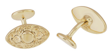 Vintage Victorian Floral Lozenge Shape Engravable Cufflinks Design in Solid Sterling Silver with Yellow Gold Vermeil