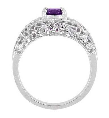 R481W10This lovely 1950's reissue Retro Moderne diamond engagement ring in white gold is a classic space age design! At its center is a white round brilli...