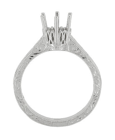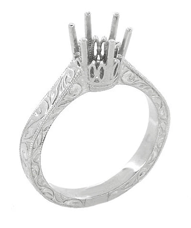 This engraved Art Deco platinum crown engagement ring setting features a secure six prong filigree crown setting as the perfect frame for your 1.25...