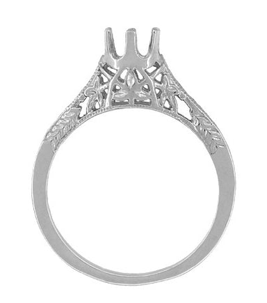 This exquisite vintage engraved Art Deco platinum engagement ring mounting design for a 1/2 carat diamond features a secure four prong filigree cro...