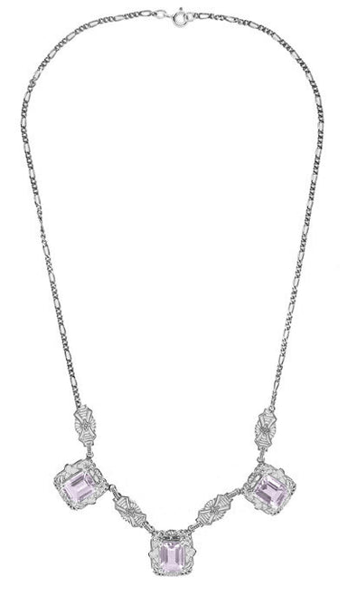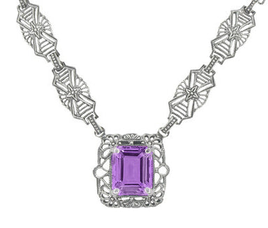 The romantic designs of filigree necklaces first gained popularity during the Edwardian and Art Deco design periods from 1910 through the 1930's. The ease of wear and intricate vintage design details of filigree pendants has kept their desirability strong up to the present day. Enjoy our filigree necklace collection!