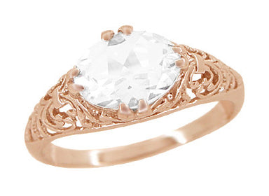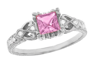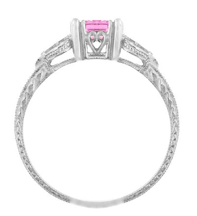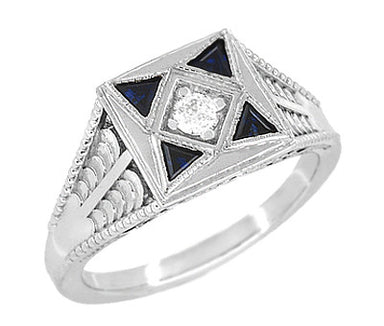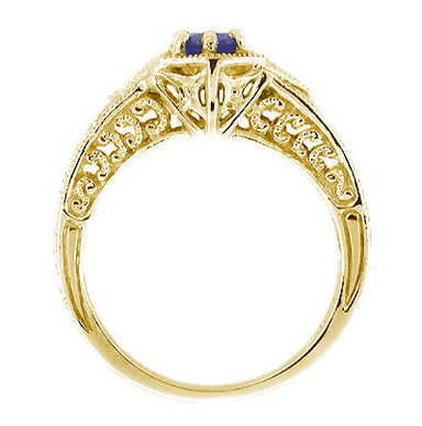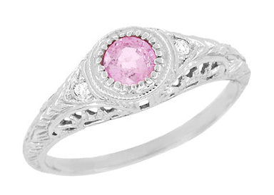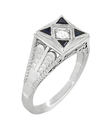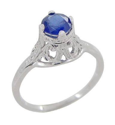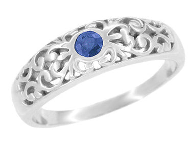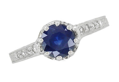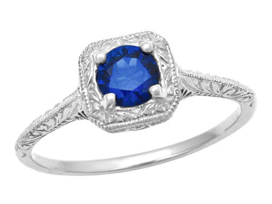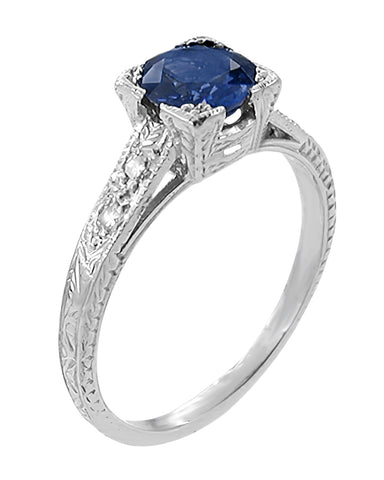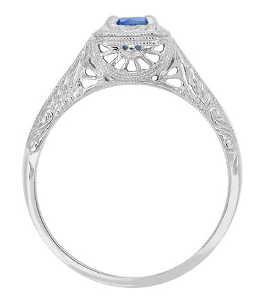 Art Deco Sapphire and Diamond Filigree Engraved Engagement Ring in 14 Karat White Gold - September Birthstone