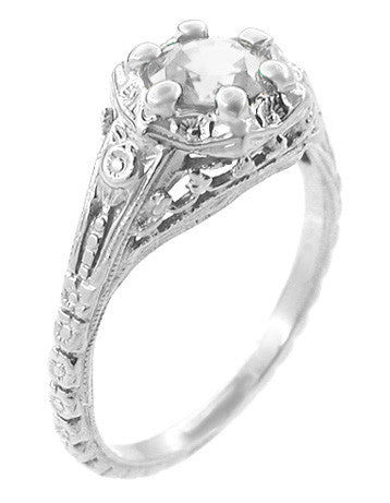 Art Deco Filigree Flowers White Topaz Promise Ring in Sterling Silver