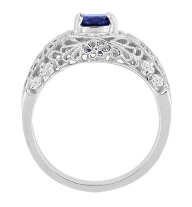 This sterling silver Art Deco filigree sapphire promise ring features a natural blue sapphire ( September Birthstone ) of 0.70 carat framed by 4 sh...