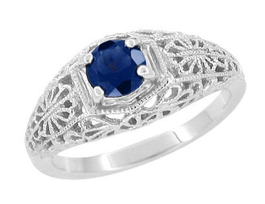 This vintage style Edwardian filigree dome blue sapphire promise ring in sterling silver features a 0.62 carat natural blue sapphire ( September Bi...