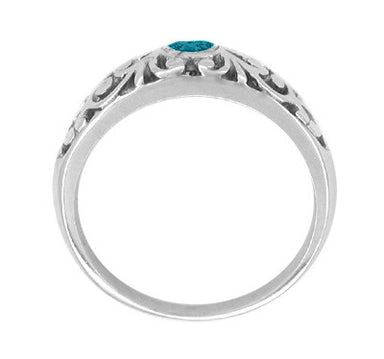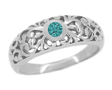 Edwardian Filigree Blue Diamond Ring in Platinum