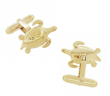 These beautiful 925 solid sterling silver sea turtle cuff links are plated with 18K yellow gold and measure 5/8 inch wide by 7/8 inch high. Crafted...