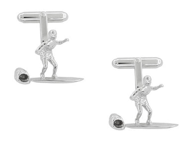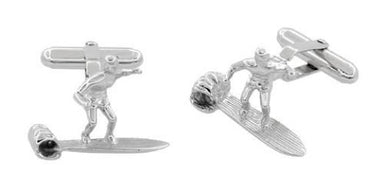 These fun solid sterling silver surfer cufflinks feature three-dimensional surfers catching waves on their surfboards! Measuring 7/8 inch high by 3...