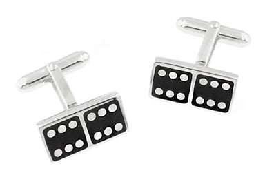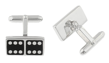 You win! These handsome solid sterling silver double six domino cufflinks feature a rich glossy hand enameled black background and a high polish fi...