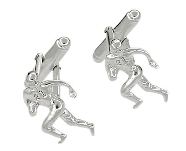 These solid high polish sterling silver cowboy cufflinks feature a meticulously detailed three-dimensional cowboy riding a bucking bronco! Measurin...