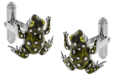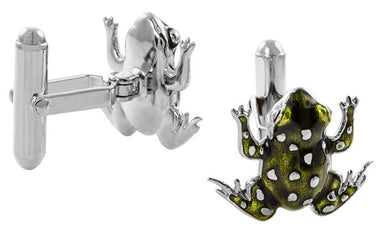 These stunning 925 sterling silver frog cufflinks feature dark green enamel with a deep luster. The smooth French champleve enamel is masterfully h...