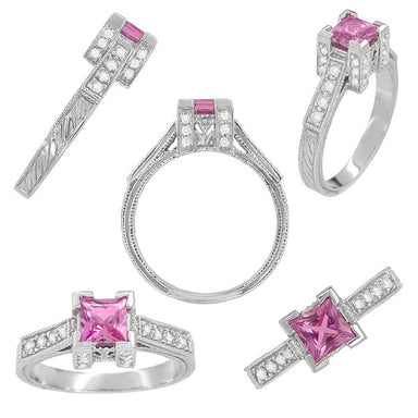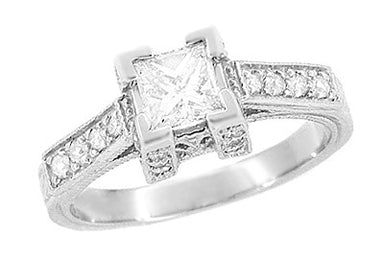 R459PDFinely artisan crafted in lavish platinum, this romantic Art Deco vintage style princess cut diamond engagement ring is hand finished and engraved ...