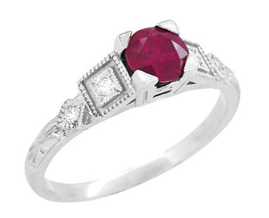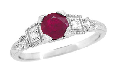 1920's Ruby and Diamond Art Deco Engagement Ring in Platinum