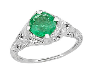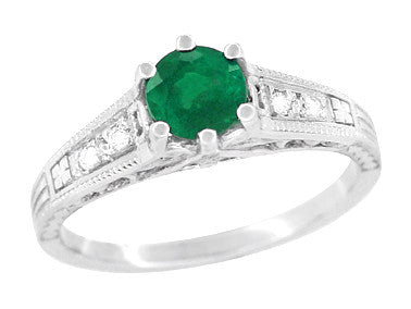 This simply elegant antique reissue platinum Art Deco solitaire emerald engagement ring features a lovely 0.51 carat natural emerald ( May Birthsto...