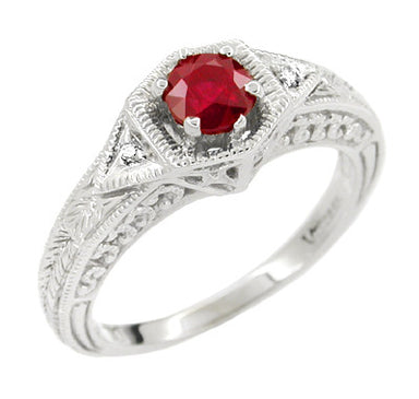 R207PThis classic vintage style Art Deco platinum ruby engagement ring features a beautiful 0.75 carat shimmering natural red ruby ( July Birthstone ), ...