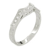This stunning platinum Art Deco filigree antique inspired castle diamond engagement ring is finely engraved on the outside of the band with a scrol...
