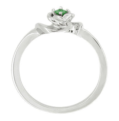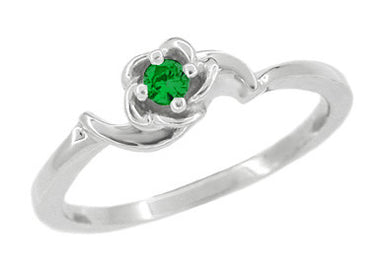 Mid Century Retro Moderne Rose Emerald Promise Ring in White Gold - 10K or 14K