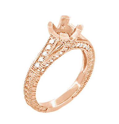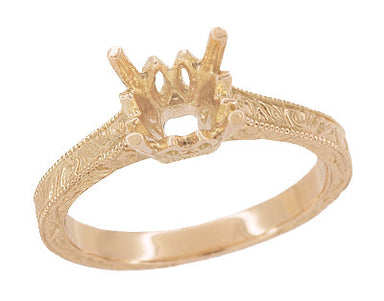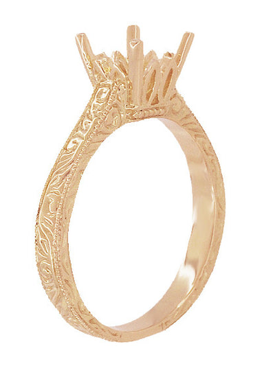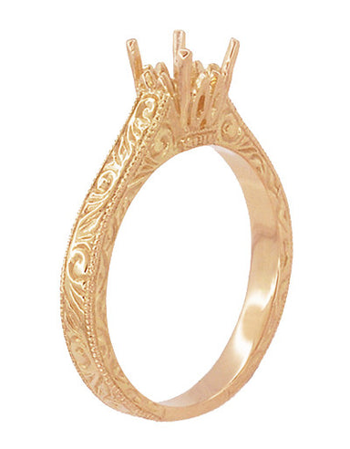 14 Karat Rose Gold Art Deco 3/4 Carat Crown Scrolls Filigree Engagement Ring Setting