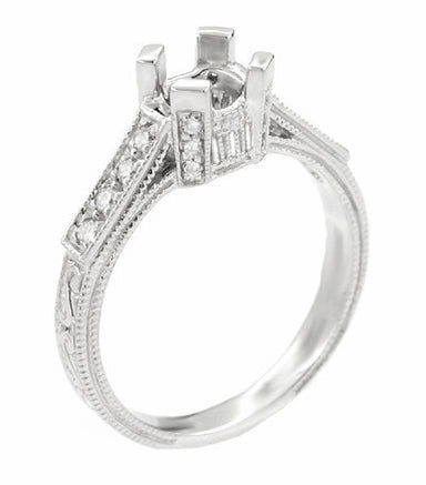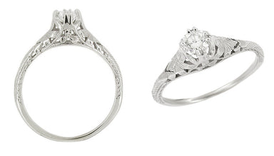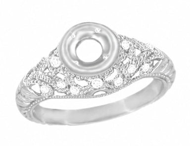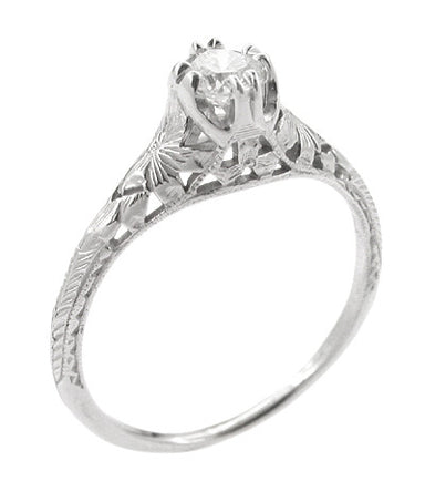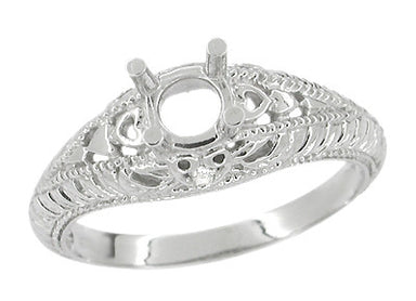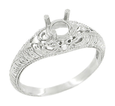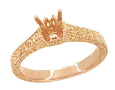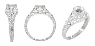 Art Deco Filigree Flowers and Wheat 1/3 Carat Engraved Engagement Ring Setting in 14 or 18 Karat Yellow Gold