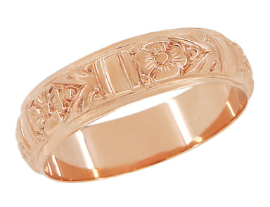 Shop vintage rose gold wedding bands for women. Browse classic 14K rose gold wedding rings for her in unique designs, and hard to find authentic antique rose gold wedding bands for sale. Our selection features hand engraved rose gold wedding rings, heirloom rose gold diamond wedding bands, and simple vintage rose gold wedding rings. Wishing for a bespoke solid rose gold wedding ring? Some wedding bands found in other metals in our collection can be crafted as exact reproductions of original vintage womens wedding rings in rose gold by special order.