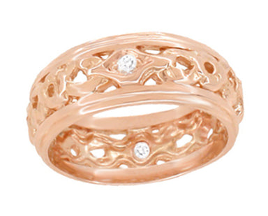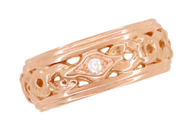Shop vintage rose gold wedding bands for women. Browse classic 14K rose gold wedding rings for her in unique designs, and hard to find authentic antique rose gold wedding bands for sale. Our selection features hand engraved rose gold wedding rings, heirloom rose gold diamond wedding bands, and simple vintage rose gold wedding rings. Wishing for a bespoke solid rose gold wedding ring? Some wedding bands found in other metals in our collection can be crafted as exact reproductions of original vintage womens wedding rings in rose gold by special order.