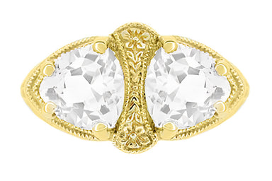 Yellow Gold Art Deco Filigree White Topaz Loving Duo Ring