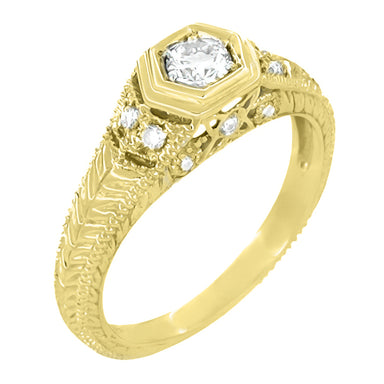 Art Deco Filigree Engraved Hexagon Yellow Gold Vintage Style Diamond Engagement Ring - 1/3 Carat T.W.