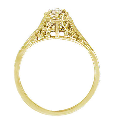 R377YE10Lovely and romantic, this yellow gold Retro Moderne emerald promise ring features a 0.03 carat round brilliant cut natural emerald ( May Birthstone...
