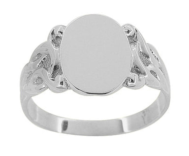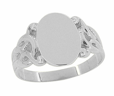 Small Victorian Shield Signet Ring in White Gold - Perfect Pinky Signet Ring