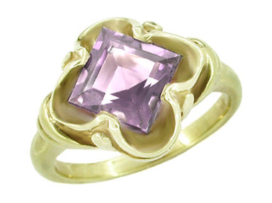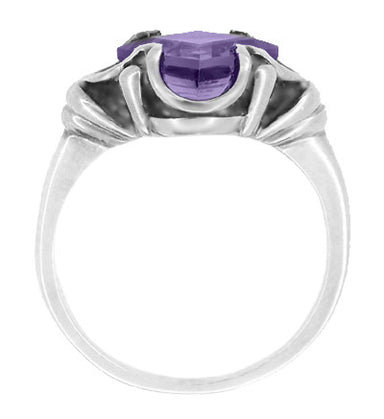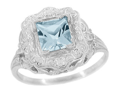 Art Deco Loving Hearts Princess Cut Blue Sapphire Vintage Style Engraved Engagement Ring in Platinum