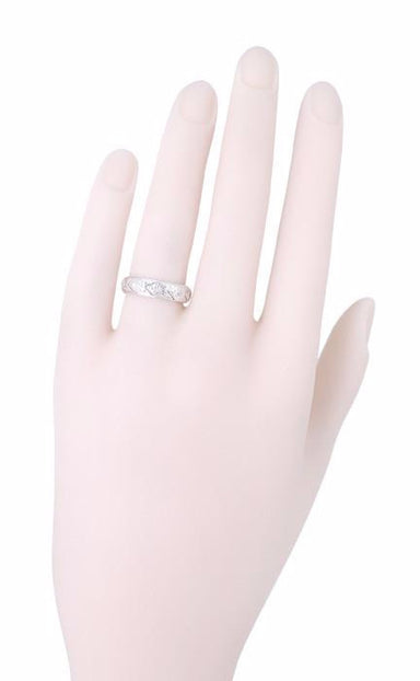Lakeville Estate Diamond Wedding Band in Platinum - Art Deco Filigree - Size 8.5