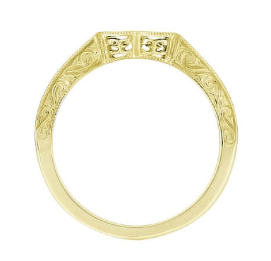 Art Deco Crown of Leaves Filigree Platinum Contoured Engraved Wedding Band
