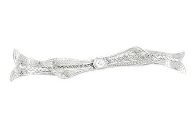 Antique 1920's Art Deco Old European Cut Diamond Engraved Filigree Bow Brooch in 14 Karat White Gold