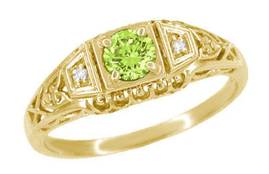 1920's Art Deco Yellow Gold Peridot and Diamond Filigree Engagement Ring