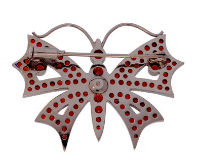 Victorian Bohemian Garnet Butterfly Brooch in Antiqued Sterling Silver