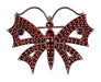Measuring 1 3/4 inches wide by 1 1/4 inches high, this bold and whimsical brooch has a straight hinged pin on the back with a safety closure for security.