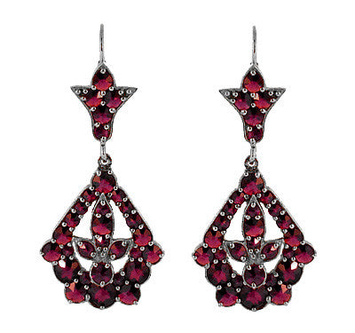 Celebrate your precious faith with this bold and radiant Victorian bohemian garnet cross pendant! Meticulously crafted in sterling silver with a rich dark antique finish, the pendant features securely prong set fiery red round rose cut natural bohemian garnets ( January Birthstone ). Each of the four corners of the cross pendant is punctuated by a cluster of brilliant garnets for elegant effect.