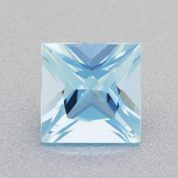 This fine loose sky blue princess cut aquamarine gem has a very good cut for maximum brilliance. High VVS clarity further enhances the natural beauty of this hand selected 0.87 carat square princess aquamarine stone.