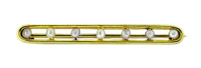 Antique Seven Seed Pearl Bar Brooch in 14 Karat Gold