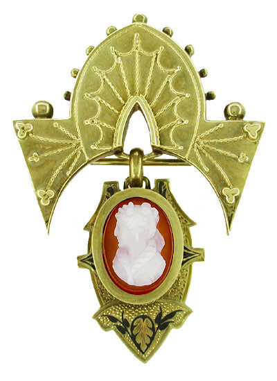 Antique Victorian Hardstone Cameo Brooch in 14 Karat Yellow Gold