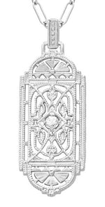 Antique Art Deco Engraved Bar Brooch in 14 Karat White Gold
