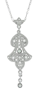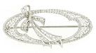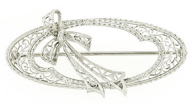 Edwardian Oval Shaped Heirloom Filigree Bow Brooch in 14 Karat White Gold